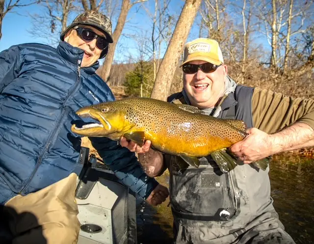 Brothers Bryan and Dave were able to land 32″ and 29″ specimens, respectively. Proud dad Joe (84 years old) enjoyed the catch at least as much as his sons. Both trophy fish were landed on the Watauga River with the excellent guiding and photography from John Stunkard.