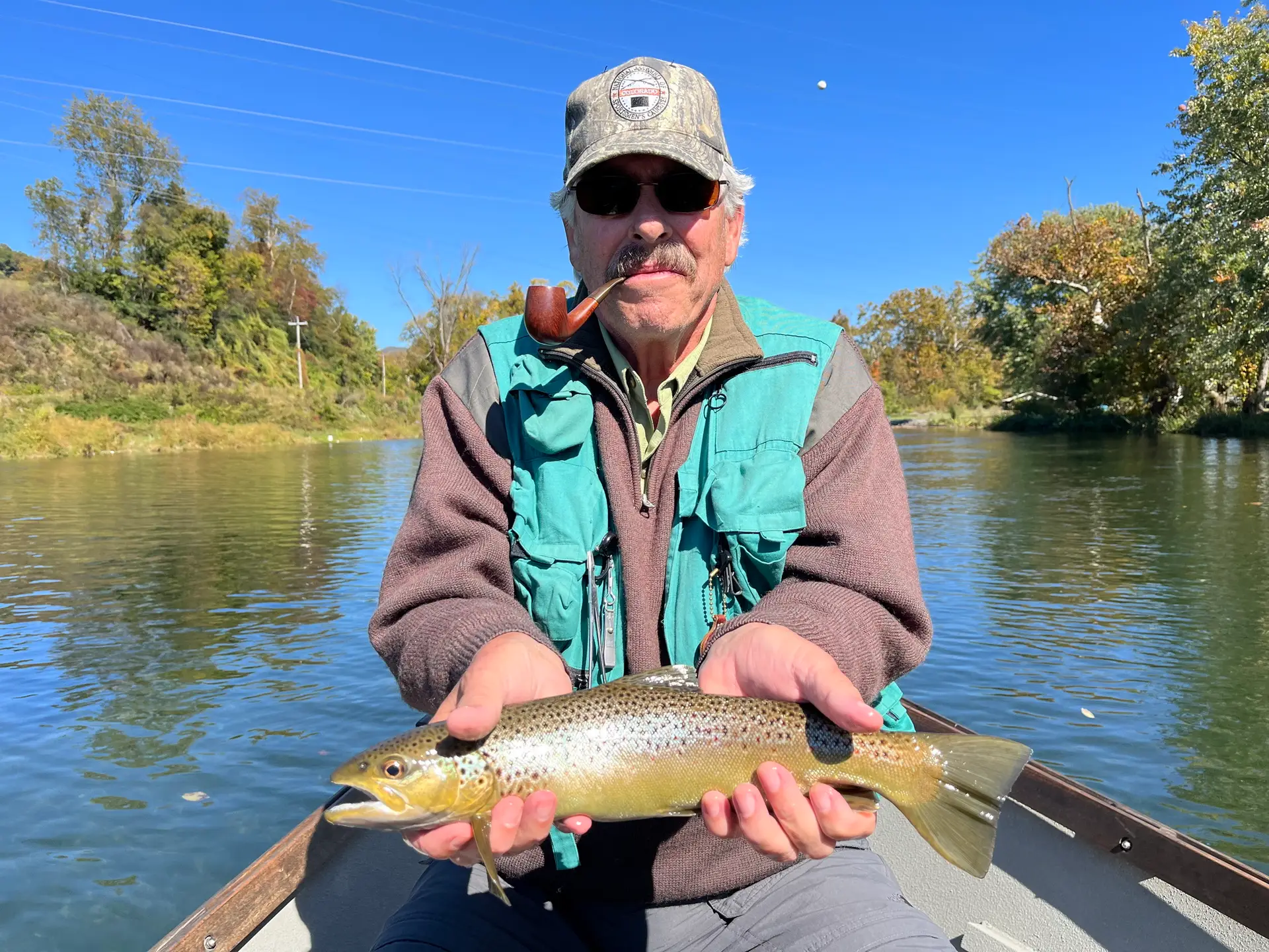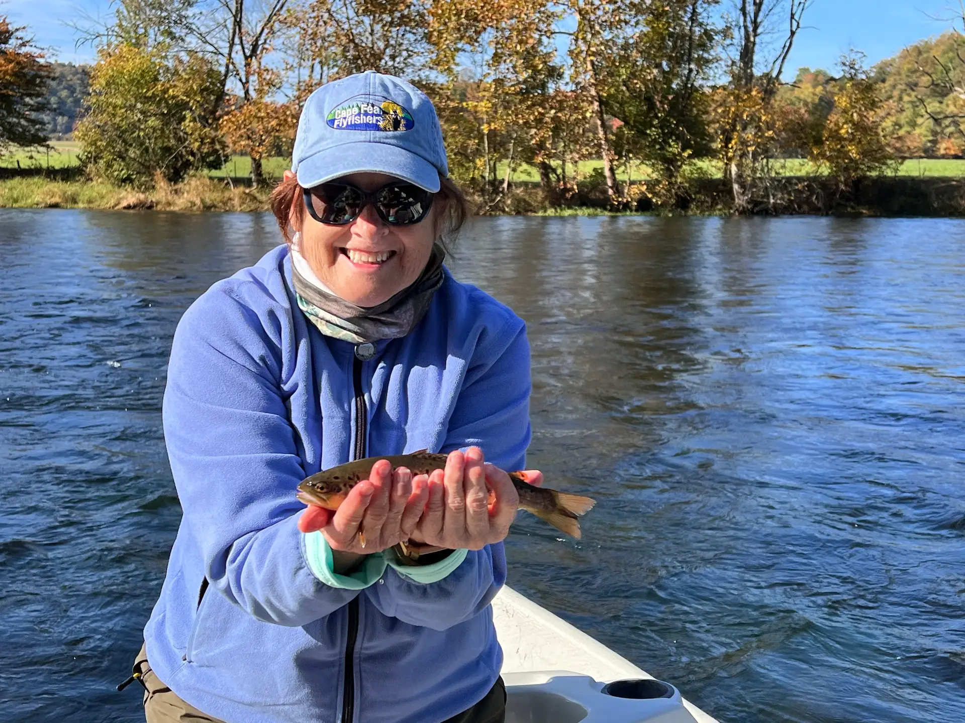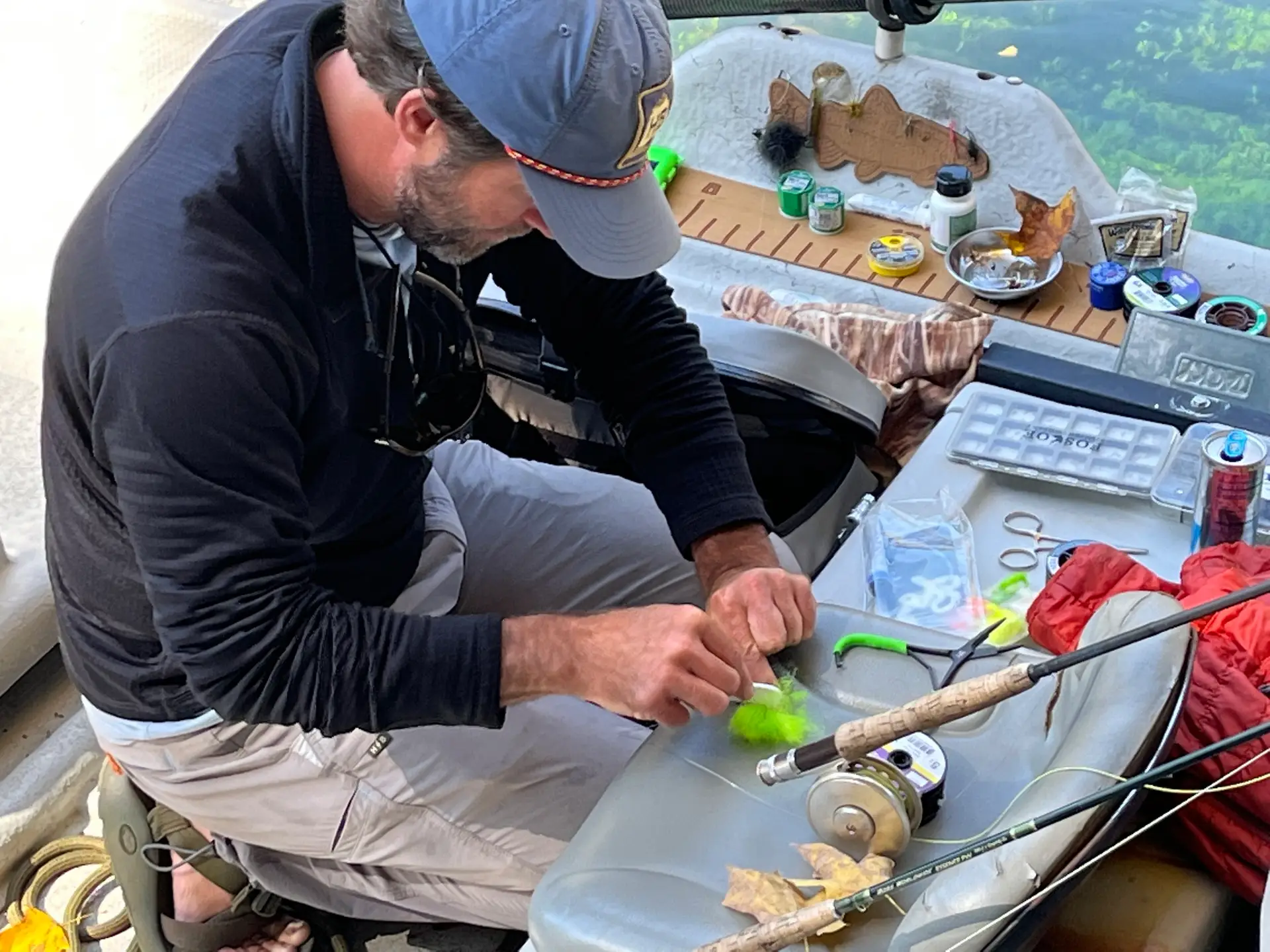 Elk Creek Outfitters provided the guides, boats and equipment. We used a line with double nymphs, the larger point nymph to get the trout’s attention and go for the trailing nymph. In this case we used midges of various colors to match the hatch. The guides were constantly changing midge colors, adding weights, and changing the height of the indicator yarn as the river depth varied. And, of course, they dealt with many of us tangling the long very light leaders. The wind on the first day made the casting of the light long rigging a challenge.